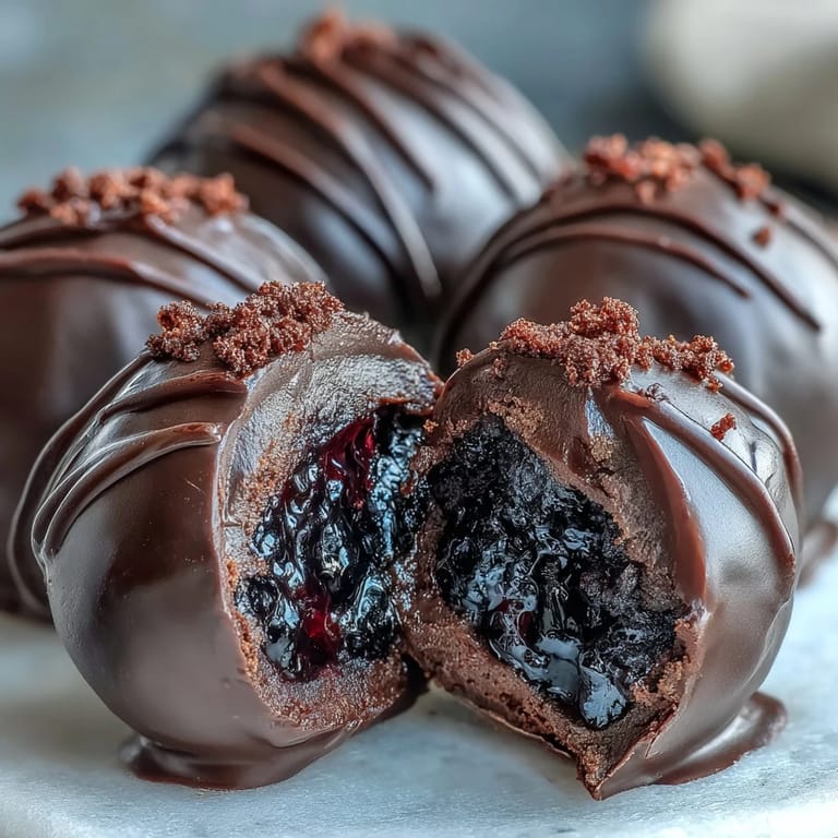 Pin this There's something almost magical about watching dark chocolate transform into silk in a double boiler, but it was the moment I added black currant purée to the ganache that everything clicked. The tartness cut through the cocoa richness in a way that felt both unexpected and inevitable, like discovering a flavor combination you've been craving without knowing it. My kitchen smelled like a European chocolaterie that afternoon, and I couldn't stop myself from tasting the ganache straight from the bowl before it even set. These truffles became my answer to the question of what to make when I wanted to impress someone without spending all day in the kitchen.
