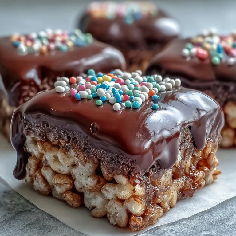 Stirring half a teaspoon of vanilla extract into the melted marshmallows adds a warm, bakery scent that makes the whole kitchen smell amazing. For holidays, swap semisweet chocolate for white chocolate and use pastel or seasonal sprinkles to match the occasion. I have also folded in a handful of mini chocolate chips or toffee bits with the cereal for extra pockets of sweetness. One friend drizzles peanut butter over the chocolate layer before it sets, and I can not argue with that logic.
