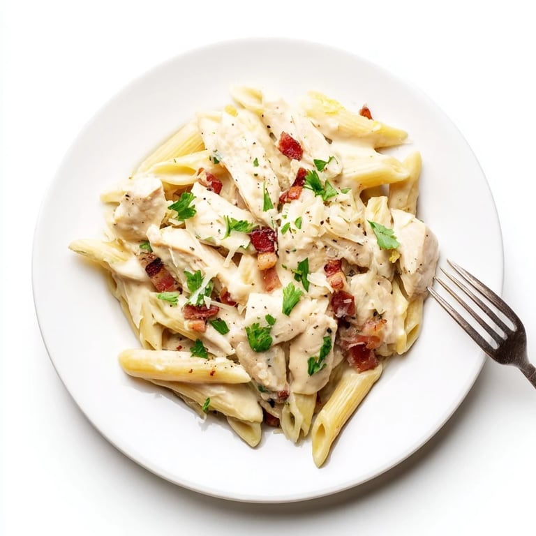 Pin this My neighbor knocked on the door one evening holding an empty casserole dish and asked what I'd been cooking all afternoon. The smell of garlic and bacon had drifted across the driveway, and she wasn't leaving without the recipe. I'd been experimenting with a creamy pasta that combined everything I loved about comfort food: crispy bacon, tender chicken, and a sauce so velvety it clung to every piece of penne. That dish became my go-to whenever I needed something impressive but didn't want to spend hours in the kitchen. Now it's the recipe I get asked for most often.