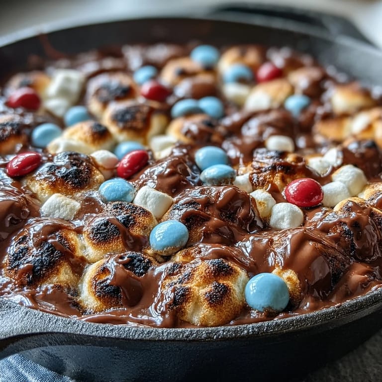 There's something about watching a cast iron skillet do the heavy lifting that makes you feel like a kitchen genius. My kids stood on their tiptoes to peer into the oven, watching the marshmallows puff up and turn golden, their faces glowing in the oven light like they were witnessing actual magic happening. When I pulled it out and drizzled those red, white, and blue candies across the top, they erupted like I'd just invented dessert itself.