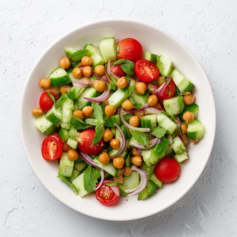 Pin this I threw this salad together on a Tuesday afternoon when the farmer's market cucumbers were so crisp they practically snapped in my hands. The mint was still damp from morning watering, and I had a can of chickpeas that needed using. What started as improvisation became something I crave every warm evening.