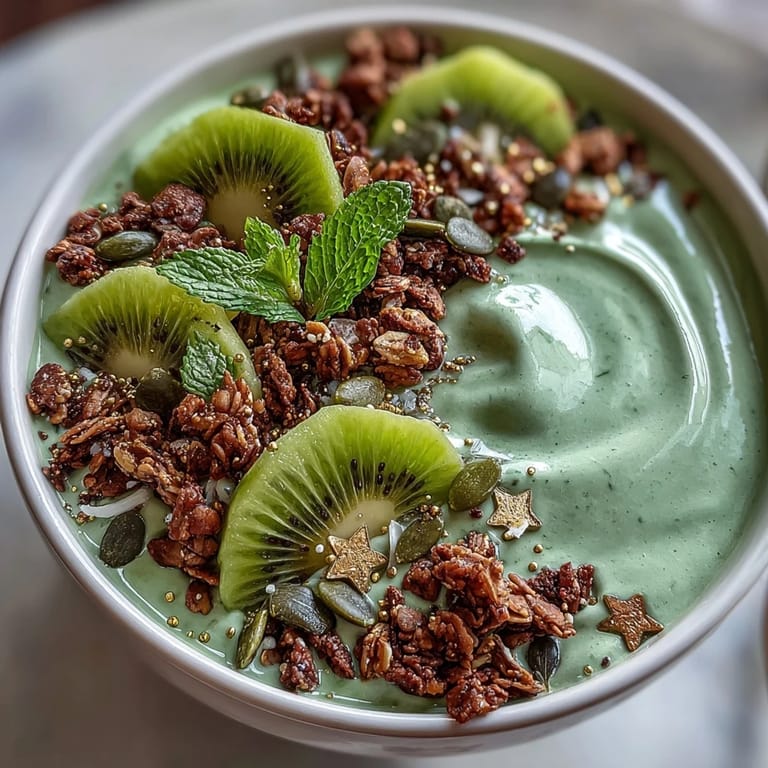 Pin this Last March, my coworker showed up to the office with this vibrant green bowl, and honestly, it looked too pretty to eat. She caught me staring and laughed, explaining it was her St. Patrick's Day tradition—a way to celebrate without the heavy green beer and fried food. I asked for the recipe that same day, and now every year around this time, I find myself blending up frozen bananas and spinach, arranging kiwi slices into little shamrocks, and feeling genuinely excited about breakfast.