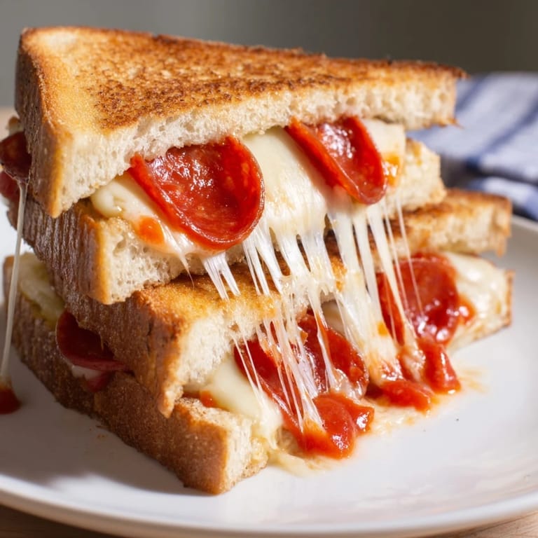 Pin this My roommate brought home a half-empty container of marinara sauce one Tuesday night, and I was determined not to let it go to waste. Standing at the kitchen counter with bread, cheese, and pepperoni in hand, I realized I could merge two of life's greatest comforts into one glorious sandwich. The first bite hit differently—crispy buttered edges giving way to molten mozzarella and that familiar pizza tang. It became our late-night salvation, the kind of meal that makes you wonder why it took so long to exist.