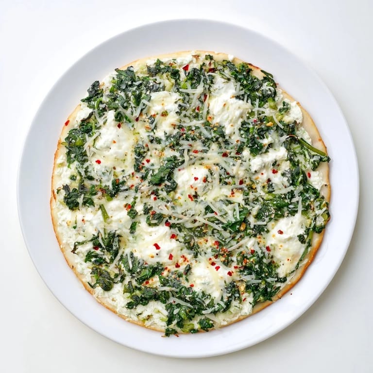 Pin this My neighbor knocked on my door one Thursday evening holding a bag of spinach from her garden, far too much for one person to use before it wilted. I had pizza dough thawing on the counter and a tub of ricotta I'd bought for lasagna I never made. Sometimes the best meals come from what needs using up. That night, I learned that spinach and ricotta don't need tomato sauce to make a pizza worth remembering.