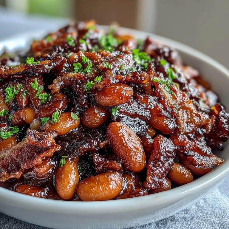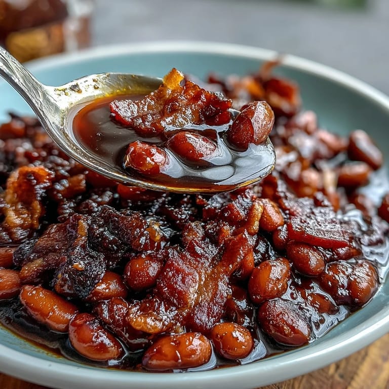 Pin this This recipe is more than just a side; it's a celebration of summer's bounty and the irresistible aroma of smoky bacon mingling with caramelized brown sugar. Baking the beans allows the sauce to thicken beautifully, coating each spoonful with sweet, tangy goodness. Whether served alongside burgers, ribs, or grilled veggies, these baked beans bring comfort and nostalgia to every meal.
